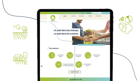 B Un site complexe, avec beaucoup de fonctionnalités qui sont apparues au cours du projet. Le groupement des agriculteurs biologiques d'Île-de-France (GAB IdF) a des actualités, un agenda, des annonces, une carte interactive, 5 expertises, différents publics à adresser, un observatoire, mais aussi des formations, des livrets, des adhérents... (liste non exhaustive).
