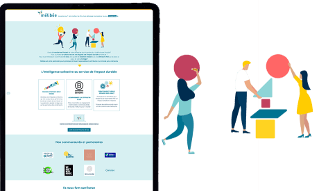 B Mélibée est un site qui joue graphiquement avec ses couleurs et les triangles afin de présenter ses offres pour contribuer à un monde qui se réinvente.