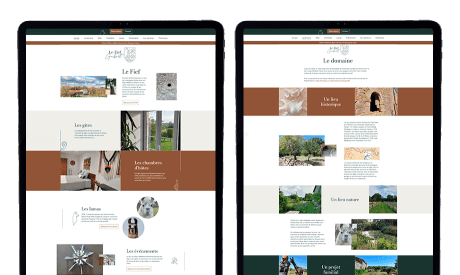 Site présentant une activité de tourisme avec une maison d'hôtes et des gîtes entourés d'un élevage de lamas. En collaboration avec l'agence Muscade pour le graphisme.