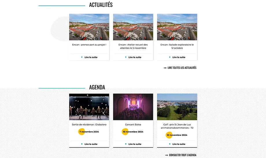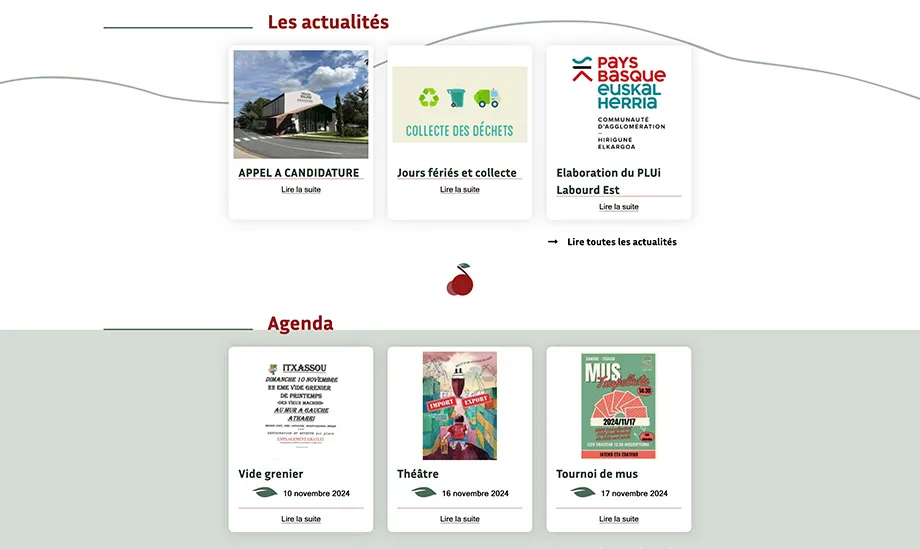 Ici, nous vous présentons la variété et la qualité que permet le système Elgarweb pour le site de votre commune.Le projet Elgarweb propose un socle commun de fonctionnalités, et chaque commune est ensuite libre de mettre son site aux couleurs de sa mairie en fonction de sa charte graphique.